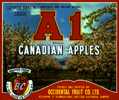 Although British Columbia is a major fruit growing region, like Washington state, it's commercial history only goes back about 80 years. As early as 1908, fruit growers realized that some form of centralized marketing had to be developed. Several attempts were made to organize growers through voluntary cooperation. But, most of these schemes failed. In the mid-1920s, growers realized the rapidly growing volume of their products, and its perishable nature began seeking legislation to control and market their produce in an orderly fashion. In the late 1930s, a marketing act was finally pounded out, and has remained in place ever since. In 1939, B.C. Tree Fruits Limited came into being as the sole marketing agency for the fresh fruit crop of the interior area of B.C.